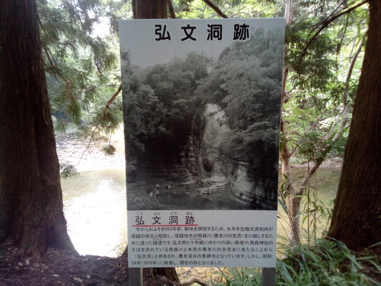 遊歩道を歩いていると案内板がありました。もともとはトンネルのような形だったらしいのですが崩落して今の景色になったと記載されていました。この案内板があるのでその事実がわかりますが、無ければまわりの景色に溶け込んでしまっているのでわからない場所と思いました。
