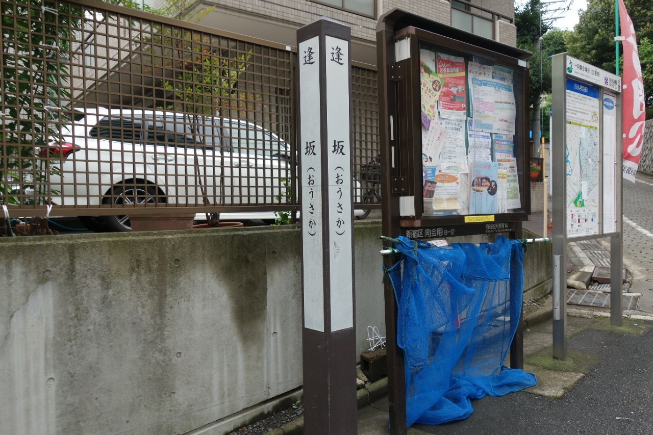 市ヶ谷あたりのエリアを散策中こちらの坂を歩きました。市ヶ谷駅から飯田橋駅方向へ外堀通りを進んでいると、途中を左に入って上っていく坂が有りました。逢坂と名付けられていることを示す標識が立っていて、周囲は都会の住宅地となっていました。