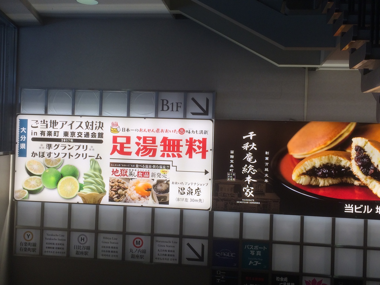 狭い店内で観光情報のパンフレットやチラシは少なめで、駅にある売店のような感じの店でした、出入口は2箇所あります。金魚か何かを飼っているのかと思ったら足湯がありました。温泉かどうかはわかりませんが狭い店内に金魚すくいの桶のようなものが足湯の施設でした。