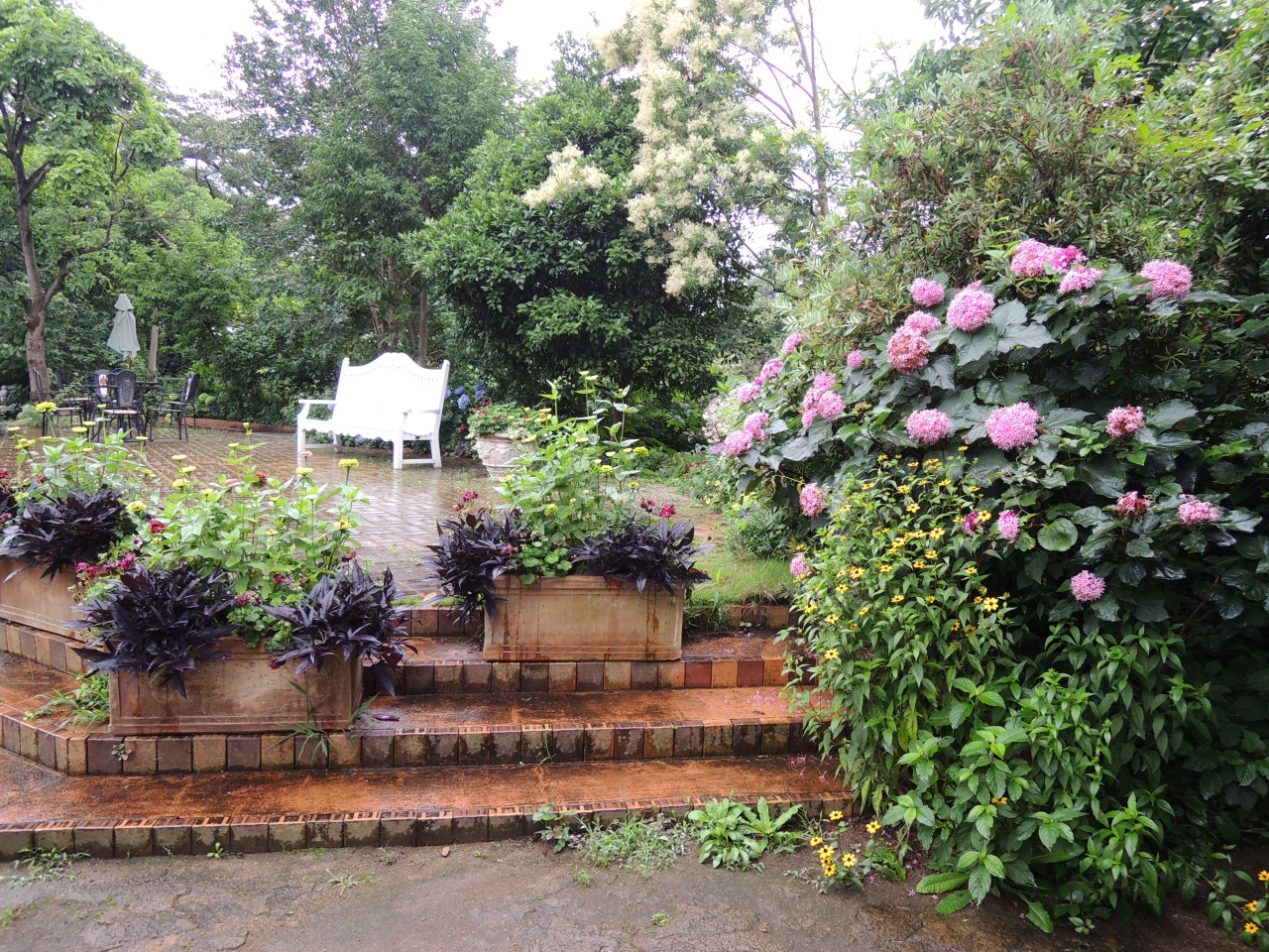 雨の日に訪れた上で入園料がいる場所でしたが、たくさんの方がBBQを楽しんでいました。駅の隣に入り口があるので、足を運びやすいということもあるのだろうなと思います。それほど広くはない敷地内に、よく手入れされた植物がたくさんあり、見ごたえがある場所でした。