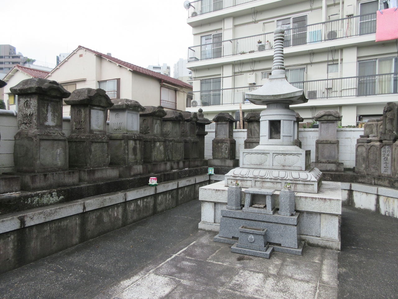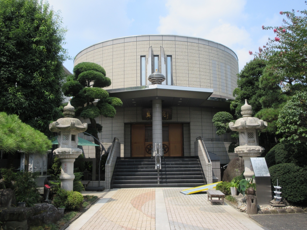 徳川家康の生母・於大の方の菩提寺である伝通院隣に建つ浄土宗の寺院で、小石川七福神の一つ・布袋尊が祀られています。本堂はデザイン化された円柱形をしています。於大の方の生家・水野家の菩提寺であることから、墓地の一角には、寺を開基した信州松本藩の初代藩主・水野忠清および歴代藩主の墓がまとまって建っています。近代化された本堂ですが、由緒ある寺であることがわかりました。