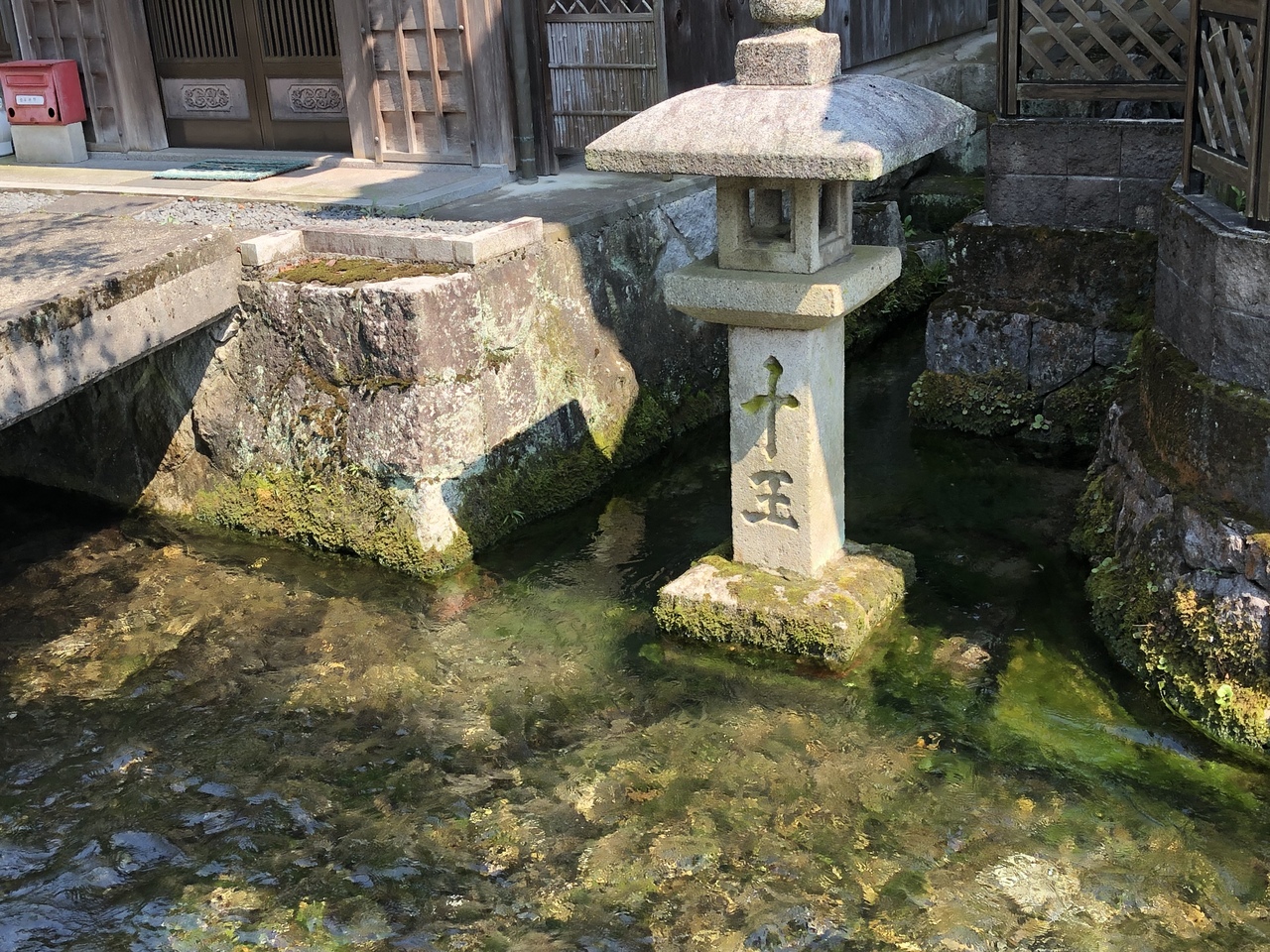 醒ヶ井宿場の中ほどにある十王水は清流の中の湧き水だった。灯篭が清流に映えます。