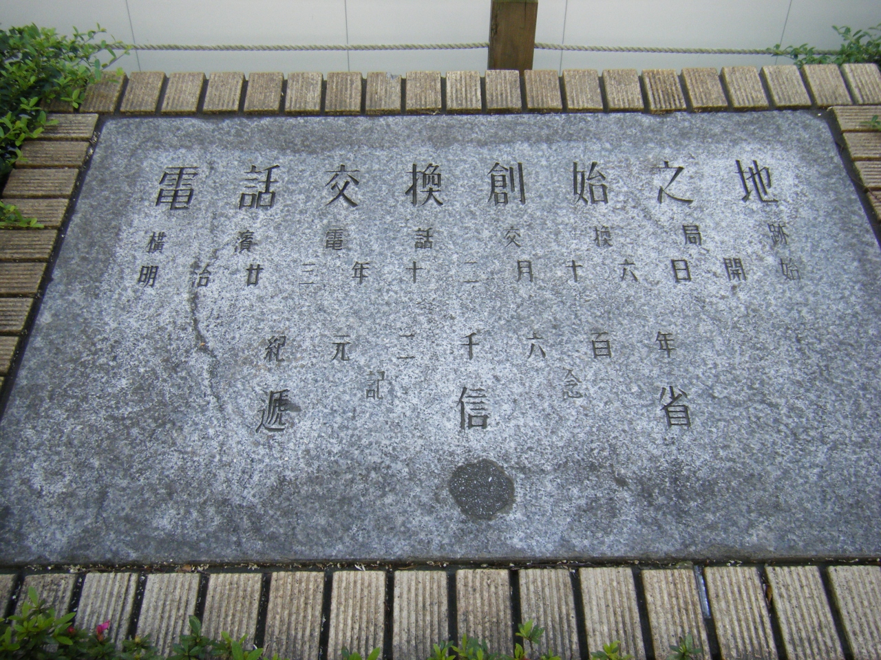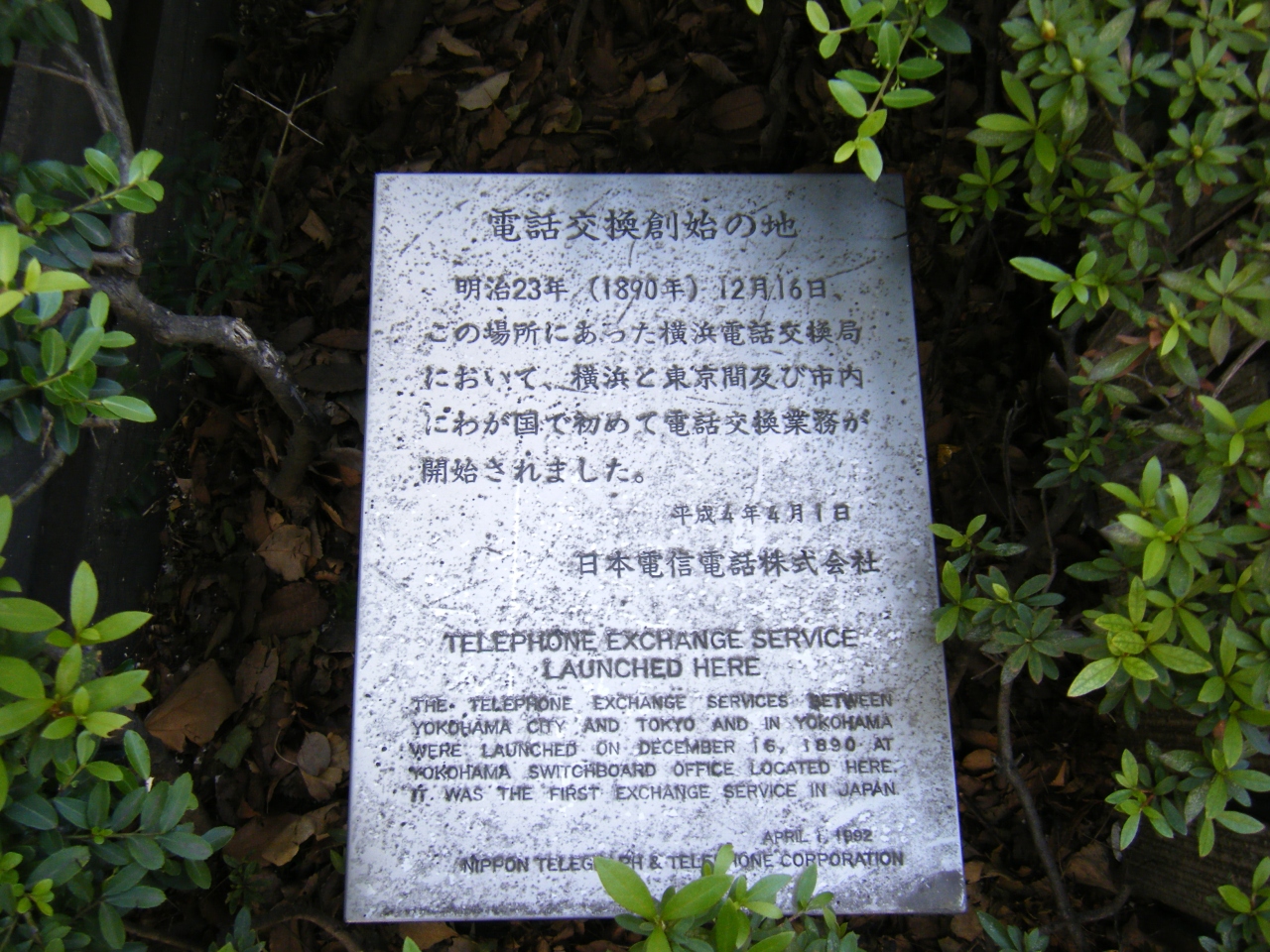 みなとみらい線日本大通り駅を降りてすぐ、横浜港郵便局のすぐそばにこの石碑はあります。1890年12月16日に、ここ横浜電話交換局と東京の電話交換局(現在の東京駅前の日本工業倶楽部ビル)との間で電話交換業務が開始されたのが歴史のようです。電話交換業務というものがどれほど大変だったのか、当時の作業を思い浮かべるのもまた面白いですね。