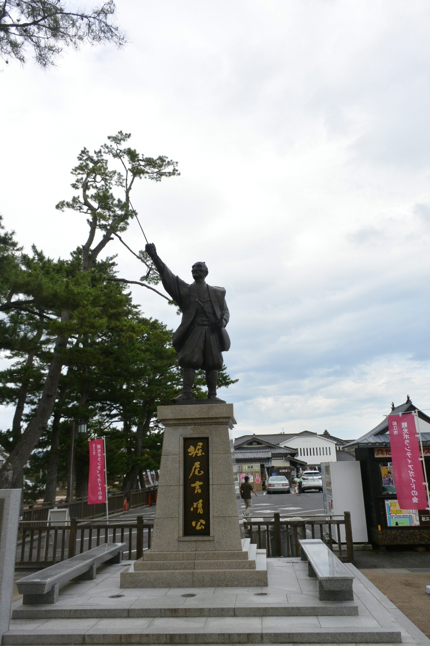 松江城というと、松平家のイメージが強かったんですが、最初に松江城を建てたのは堀尾氏なんですね。大手前にあるなかなか大きなりっぱな像で、そこにいらしたボランティアスタッフの方が像といっしに写真を撮ってくれました。