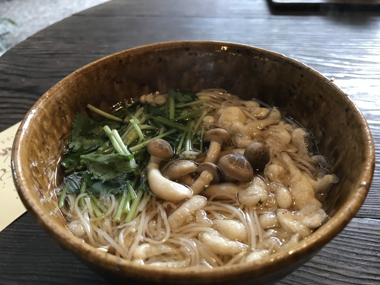 大神神社の門前にあり、風流な字で「そうめん處(ところ)」の看板が掛かっている。いわゆる門前茶屋だろう。この日はディナーが予約してあるので昼ご飯を大量に食べられないが、何せおなかが減った。ここのメニューで特産品でもある三輪そうめんと柿の葉寿司のセットが量的にちょうどよく、古民家の土間にしつらえられた席であっという間に平らげた。参拝の気分にあったお店だ。