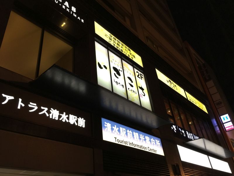 清水駅前のビルの2F。靴を下駄箱に入れてあがるシステムです。