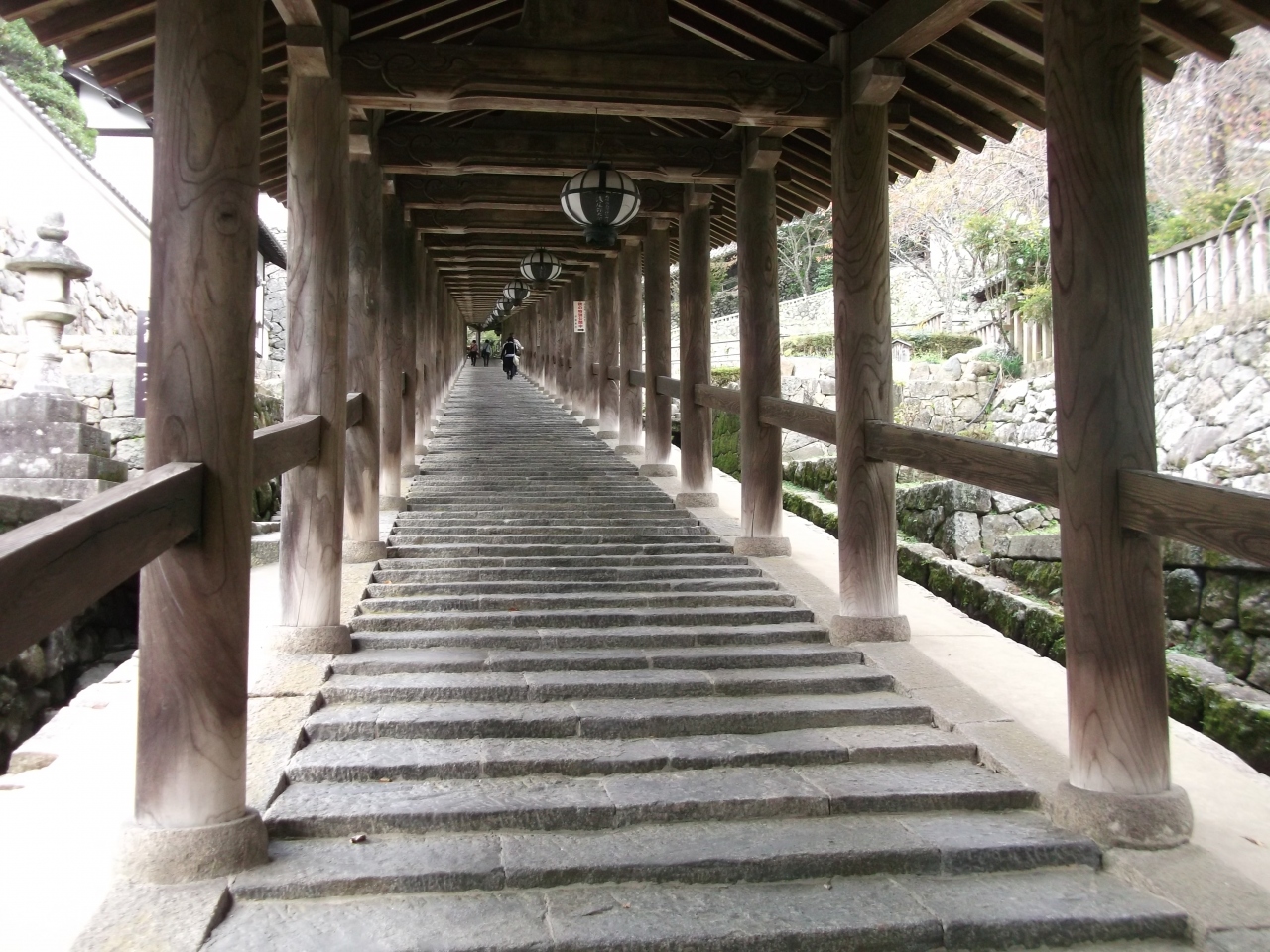 真言宗豊山派総本山の長谷寺です。最寄駅からは歩くのにはやや距離があります。仁王門から入ると、段差は小さいですが本堂まで400段の石段を上ります。上り終わった先には、十一面観音菩薩像のある本堂を始め、御影堂、五重塔など、見どころがたくさんあります。緑に囲まれた中にあるので、自然の空気を体に感じながらの散策ができます。
