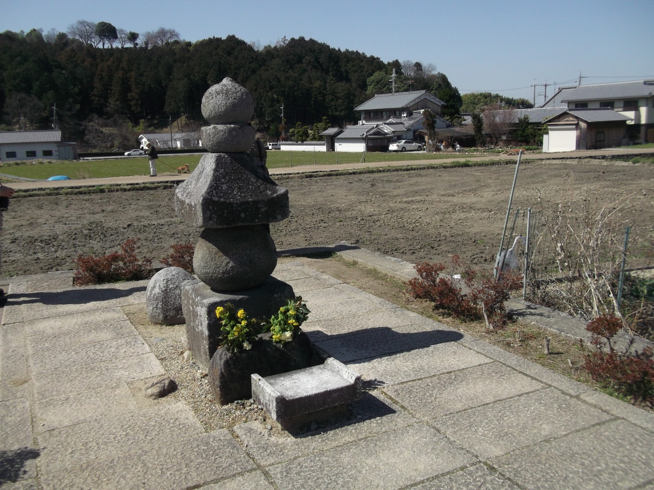 飛鳥寺からほど近いところにある蘇我入鹿の首塚です。乙巳の変で殺された入鹿の首が飛鳥板蓋宮からここまで飛んできたと伝えられ、そこでここに五輪塔が建てられたということです。田園地帯の一角に忘れられたようにぽつんとありますが、きちんと花が供えられていました。