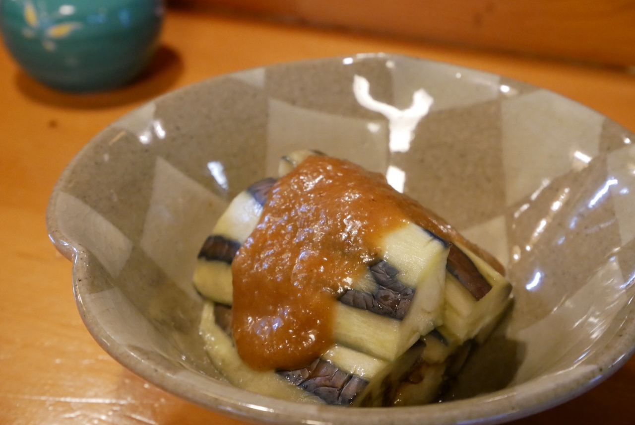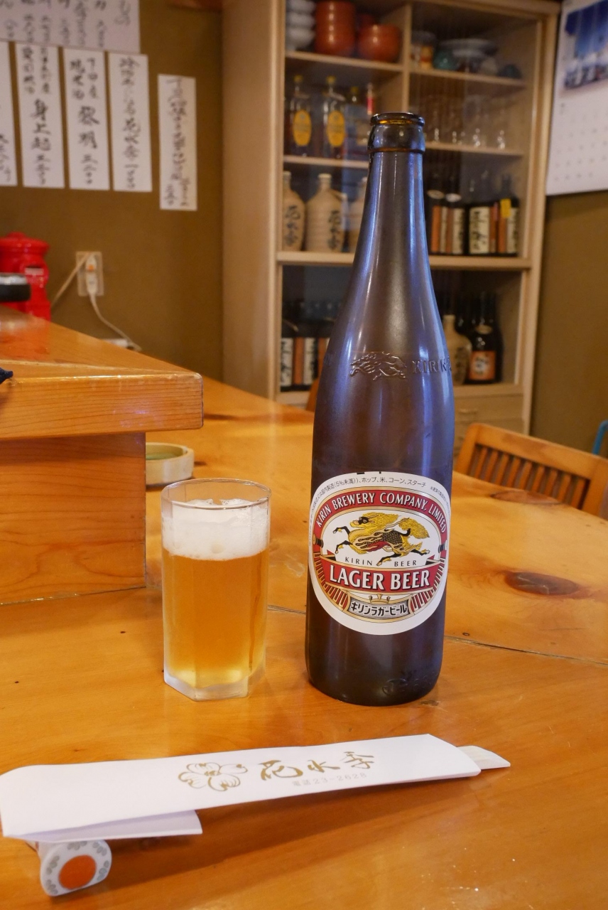 ビシッとした純白の仕事着大将の包丁捌きを見ながらの一杯