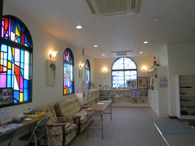レンガ造りの教会堂です。1897年に建てられ、1987年に台風で倒壊、翌年再建されたものですが、赤茶色のレンガが落ち着いた風合いを感じさせていました。奥にはルルドもありました。敷地の外には、記念品などを売っている教会付属の店がありました。中を覗きましたが誰もいなかったので、早々に引き上げました。