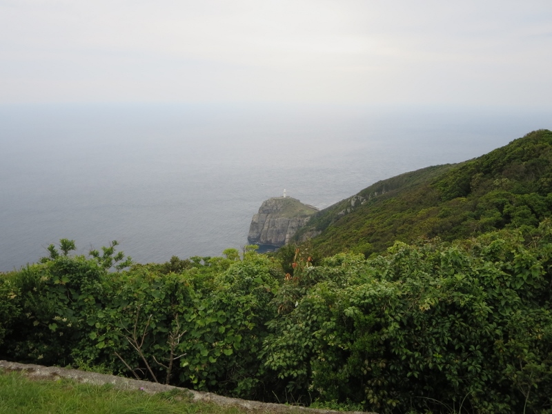 大瀬崎に行き、車を停めて遊歩道を歩きました。途中景色の良い所にでると、断崖の向こうに大瀬崎灯台が見えました。道は続いていますが、帰りはかなり急な登りとなります。とても歩いて戻ってくる時間的余裕はなかったので、遠目にみるだけにしました。