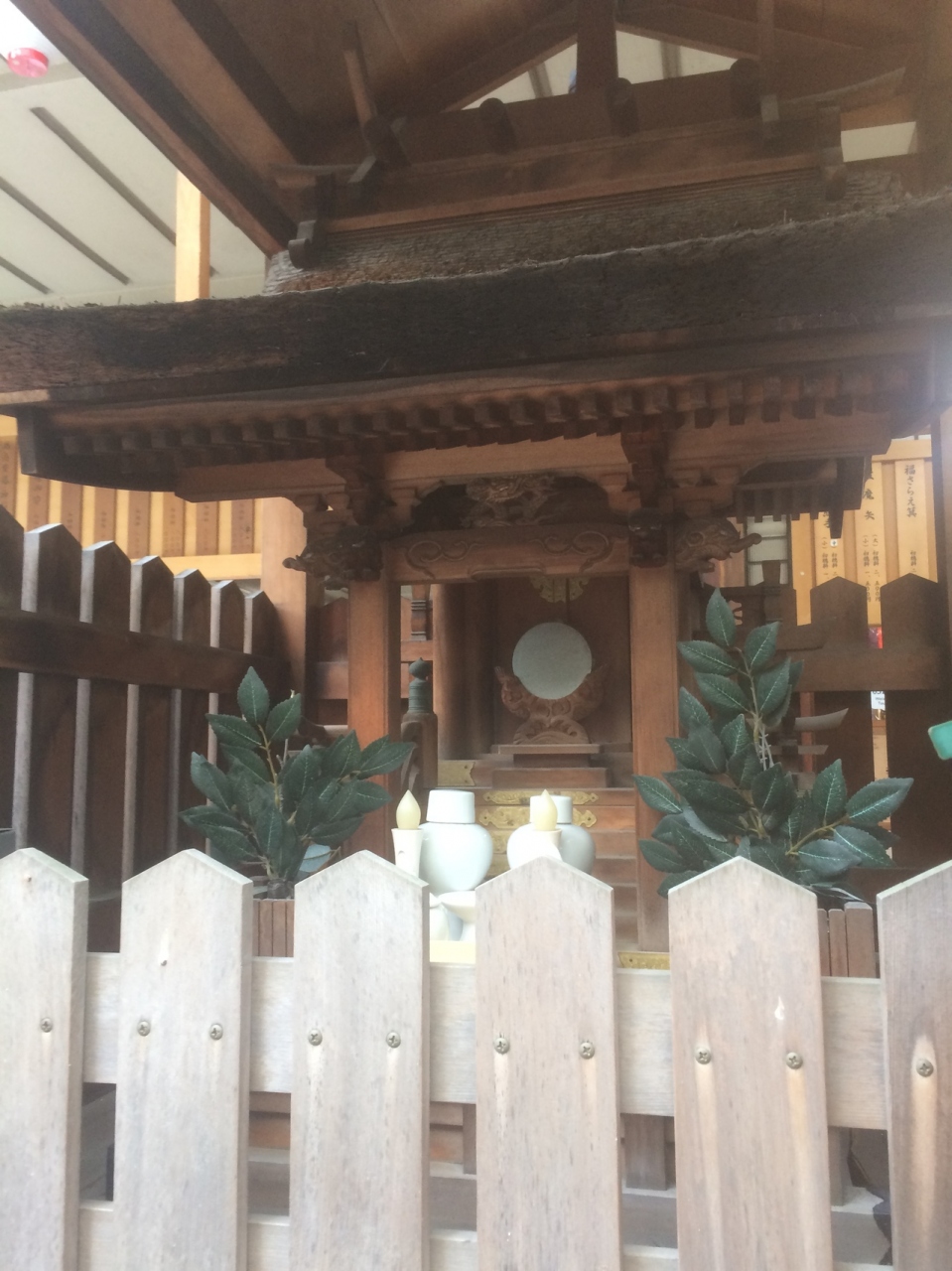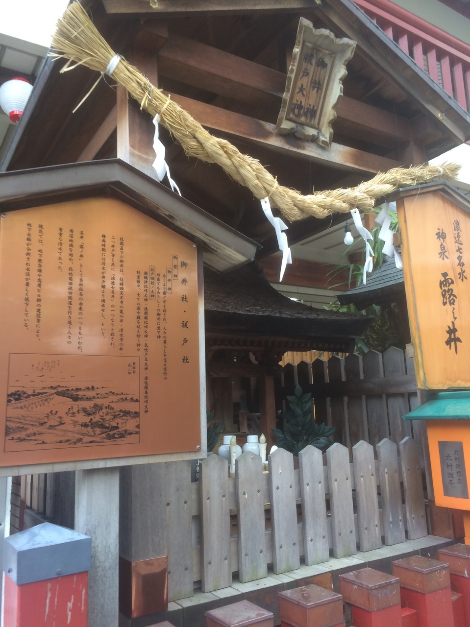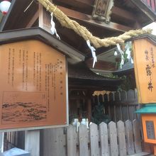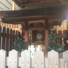 社務所の横にあり全面は赤い柵がある小さな施設でした。赤い柵の少し上に木の柵があり祠が屋根が藁葺でした。その上に全体を囲む屋根があります。神泉と書かれていましたが水がちょろちょろと出ていたのみです。名水と書かれていたので飲めなくて残念でした。