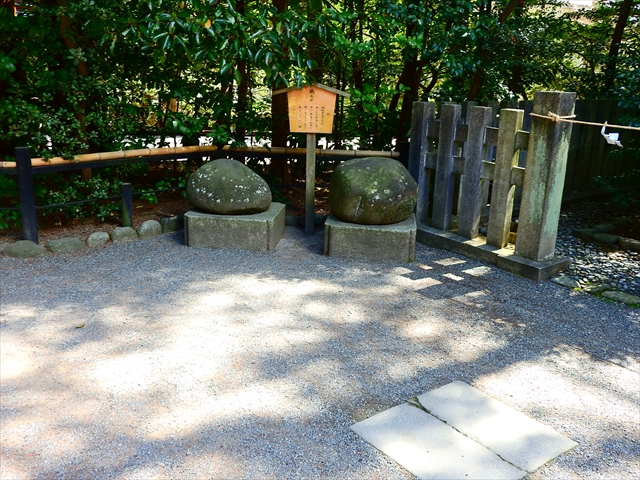 鶴岡八幡宮の中にある白旗神社に行く途中でたまたま見かけました。比較的小さな石が二つ並んでいるだけなので、説明の看板がないとそのまま見過ごしてしまうようでした。水で洗うと亀の模様が浮かび上がるそうです。訪れる人も比較的少ないので、穴場的な場所だと思います。