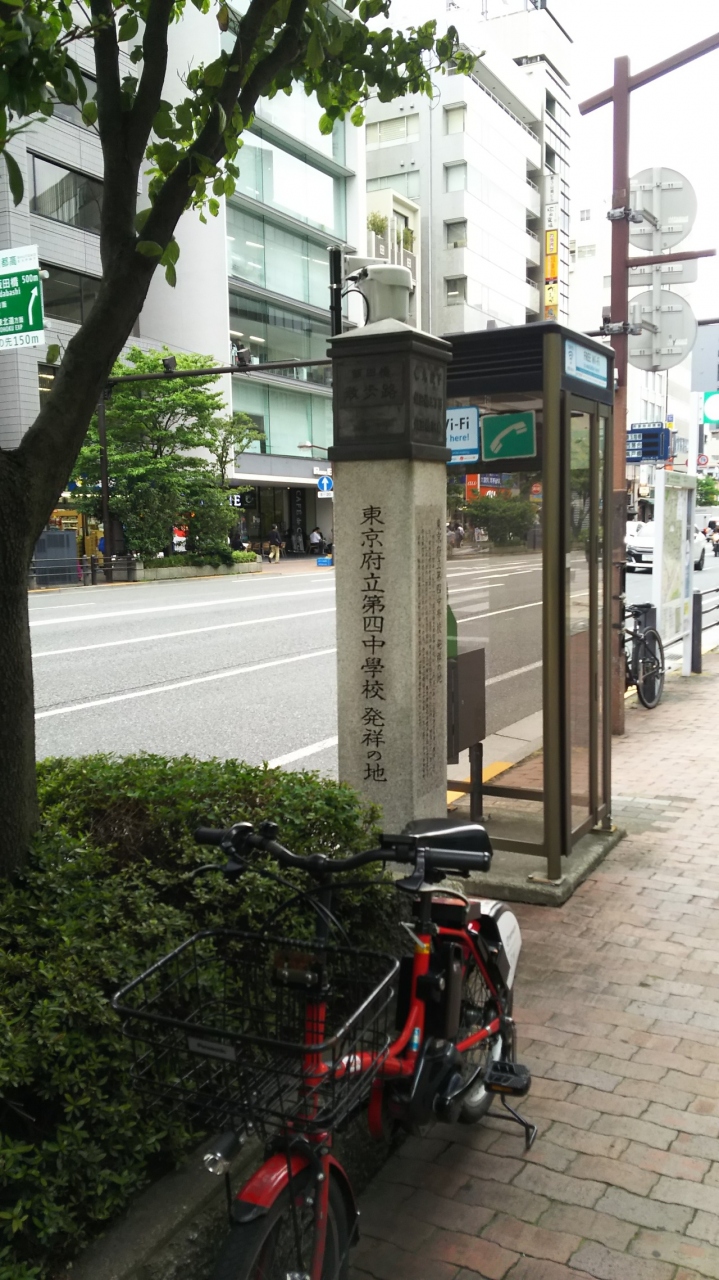 東京府立第四中学校がここに建てられたことが書かれています。明治21年9月私立補充中学校として共立中学校、東京府城北尋常中学校と改称し、同34年4月東京府立第四中学校となりました。