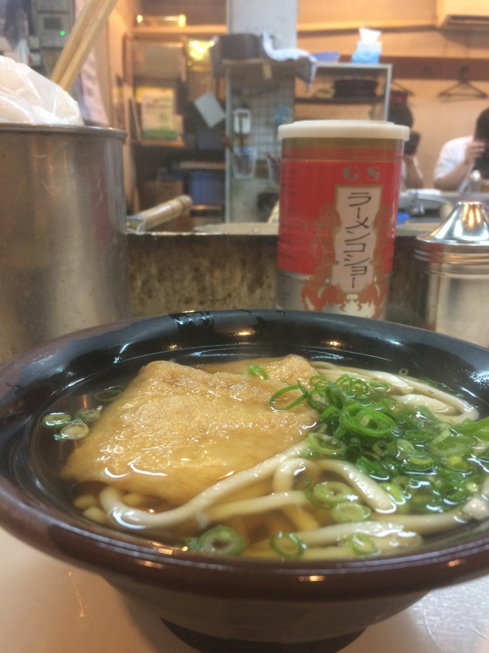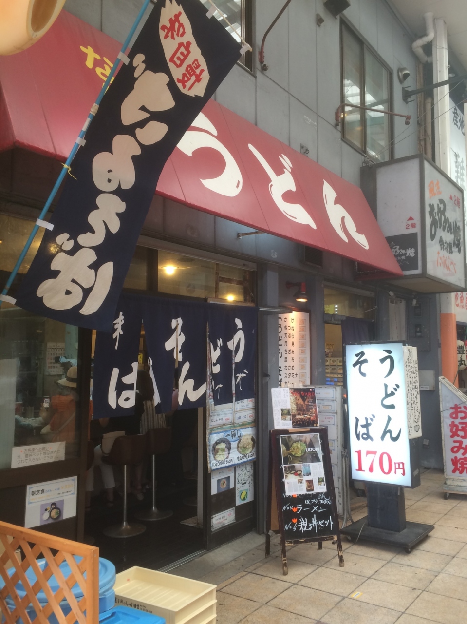 何処にでもある立ち食いそばかと思ったら、大行列が出来ていました。航空会社の雑誌にも掲載されてようです。回転率は早く10分待っただけで店内に入り、コの字型店内で椅子がありました。うどんが名物でさっぱりとした、うどんで低価格で美味かったです。