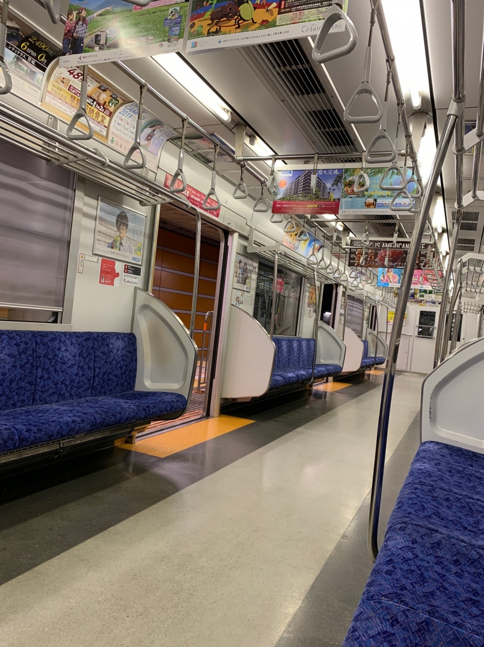 始発駅の中央林間から急行渋谷行きに乗りました。始発駅からはほぼない貸し切り状態で車内はガラガラでしたが長津田などからはもちろん人が乗ってきました。全員座れる程度なので快適座って移動できました。冷房もいい具合に効いていてありがたかったです。