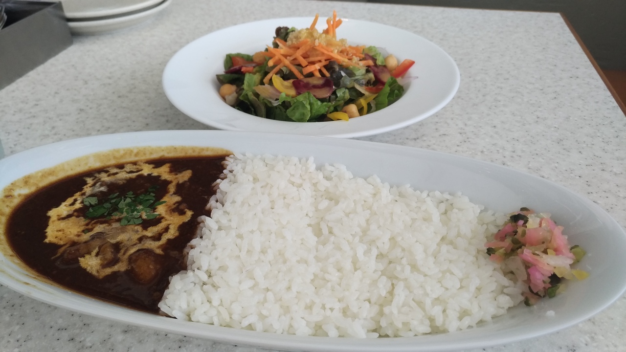 モントレーの五階に二年ぐらい前からできていたお店ですが、今回やっと入ることができました。カレーはSMLサイズから選べて、辛さはおさえられている種類のものもあります。ランチタイムはオプションでサラダなどをつけることもできます。