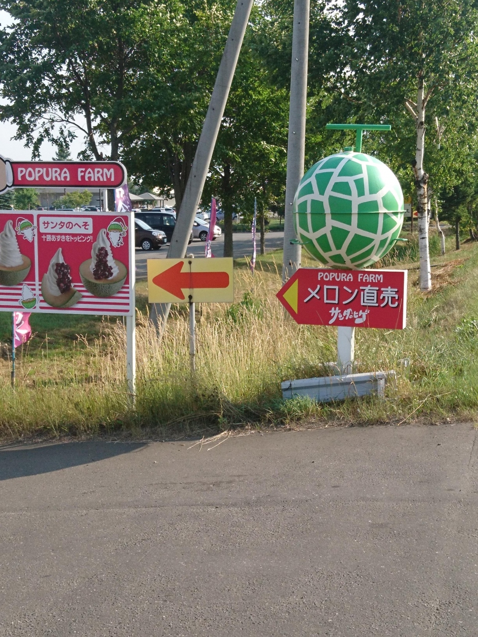 富良野から美瑛まで国道を走っていて、メロン直売場の看板が見えてきたので覗いた。メロンの値段は直売にしては高い。おまけに名物として売っているハーフカットのメロンにソフトクリームをのせたスイーツがとてもいいお値段で、まさしく昔タイプのぼったくり観光地価格。地元の者は別々にしてこの値段の半分以下で食べているよ。