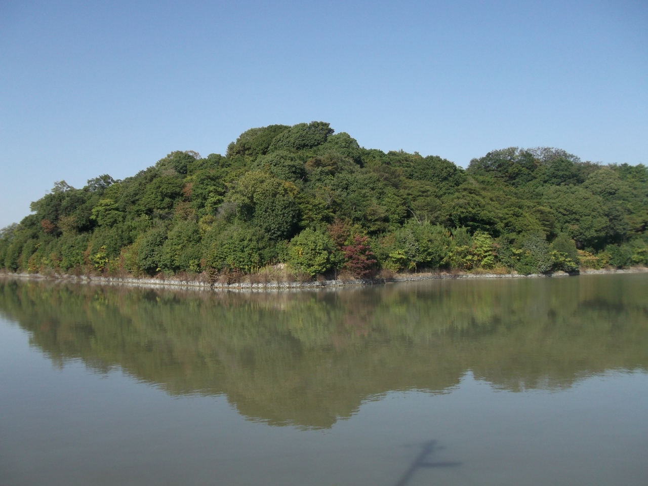 法華寺、海龍王寺から航空自衛隊基地の方に向かっていくと、通りを挟んで二つの前方後円墳が並ぶようにしてあります。とはいっても両方ともかなり大きいので、前方後円墳かどうかは見ただけではちょっとわかりません。堀の外側にある散策路を歩きながら時々立ち止まって、色々な角度から大きな小高い森のような古墳を眺めました。