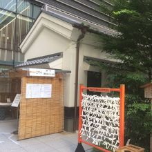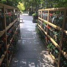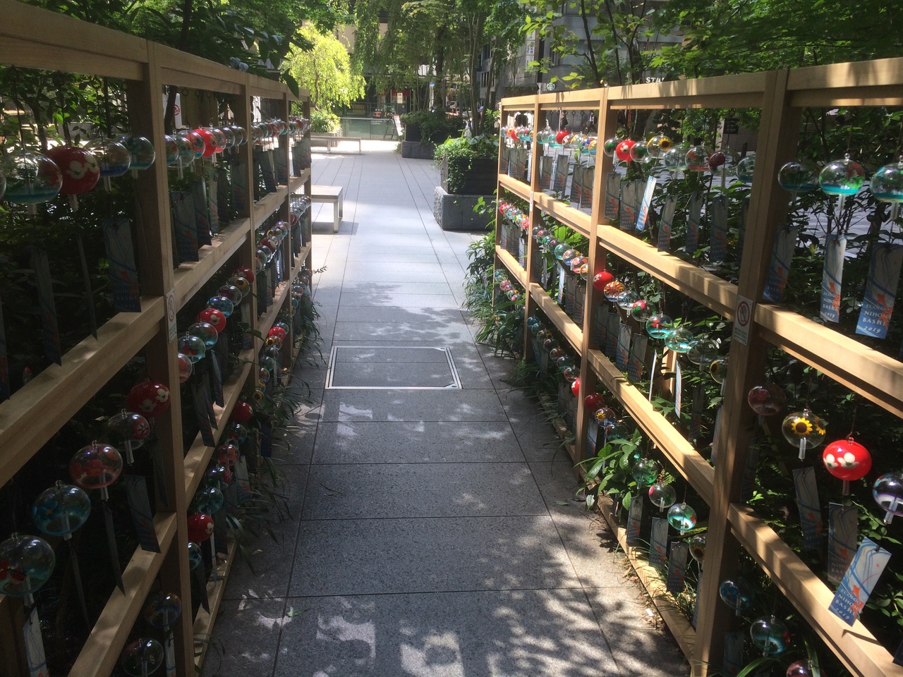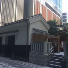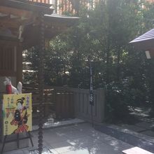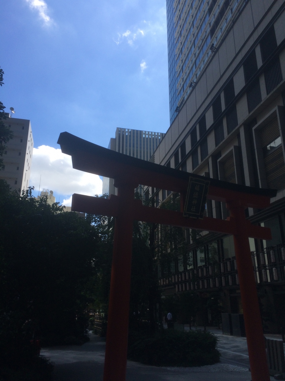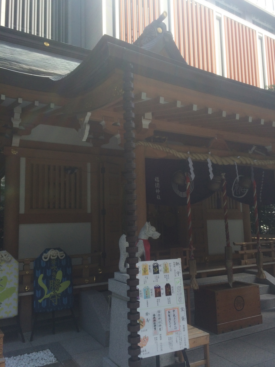 ご朱印やお守りを販売している社務所のような場所がトイレとくっついている建物でした、周りはビルだらけの場所に神社があるの心和む雰囲気となりました。鳥居が赤く、直ぐに社殿です。当選祈願と書いたもの置いてあり、宝くじにご利益がある神社なのでしょうか、都会にあるので参拝客が絶え間なかったです。周りに木々があるのも良いです。
