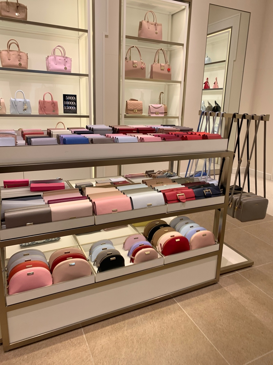 上品でキレイな色合いが多いブランドです。洋服に合わせやすく以前から欲しいなーと思っていたので寄ってみました。少し割引きがあるので正規店で買うより安くお得にお買い物ができると思います。他のブランドよりはお店が空いていてゆっくり吟味する事が出来ました。