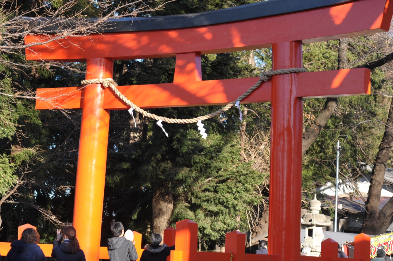 普段は、閑散としている、この神社も、初詣客で鳥居から境内までの30メートル間に人がびっしりと居ました。行列の両端には出店が沢山出ており、賑やかな雰囲気でした。