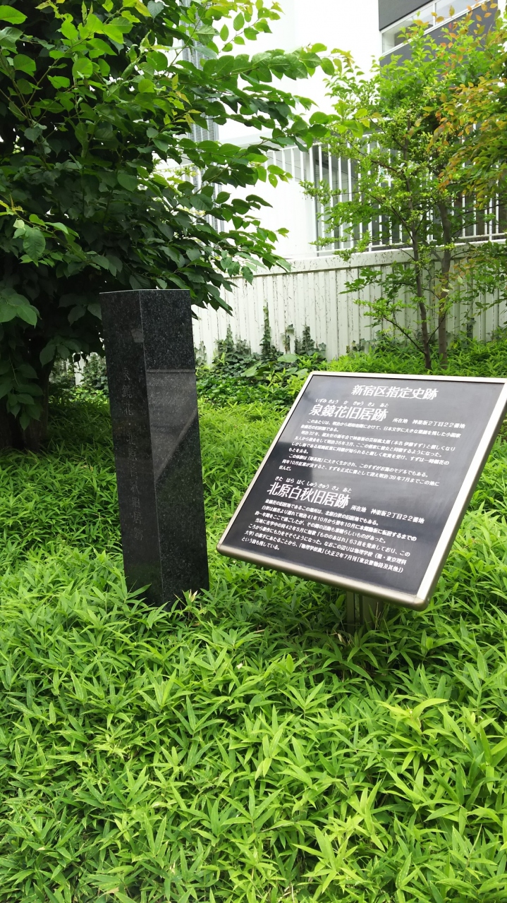 神楽坂の裏道にある史跡です。神楽坂ポルタの裏側の近くにあります。泉鏡花と北原白秋の旧居がこちらにあったということが書かれています。