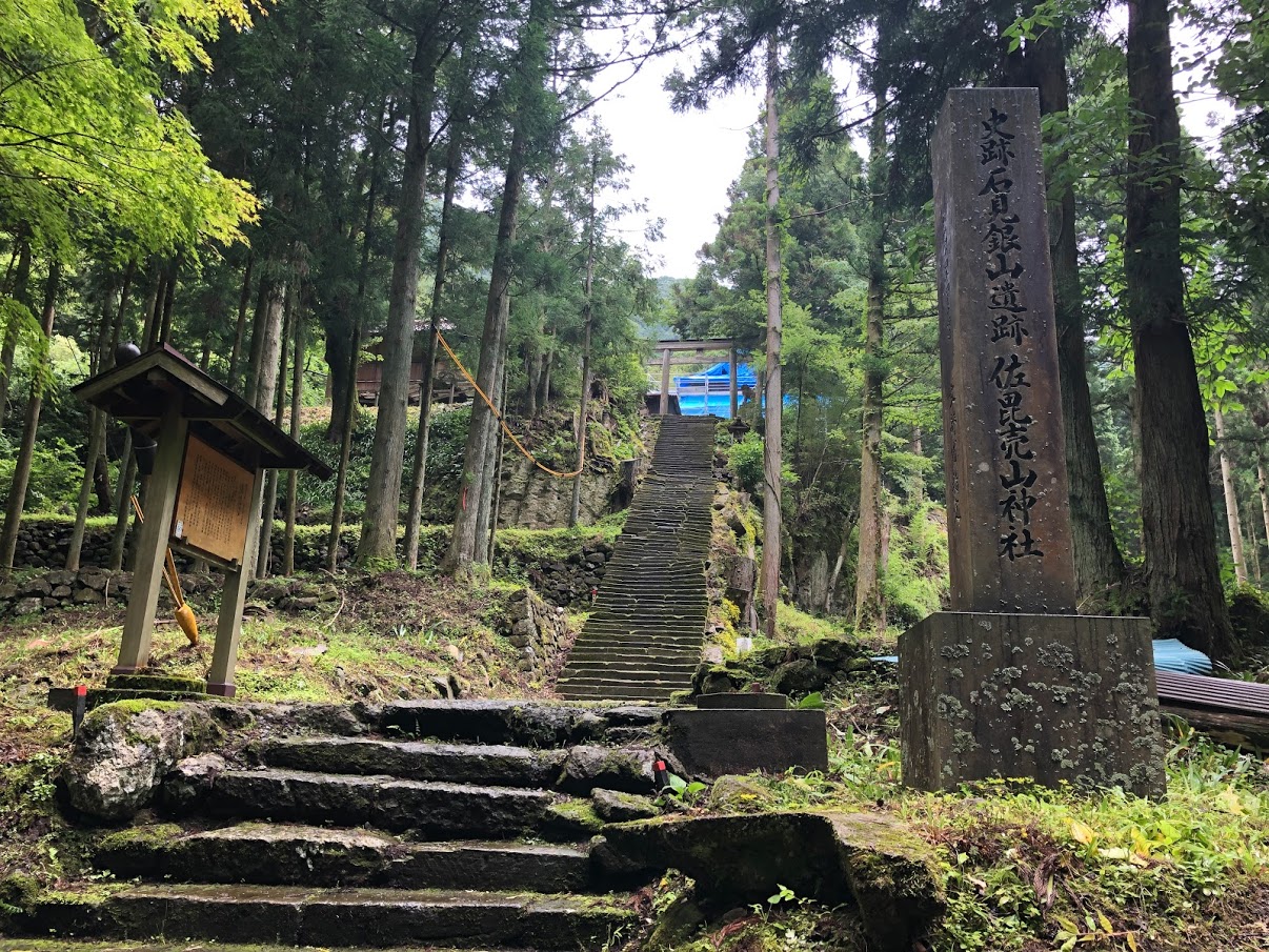 龍源寺間歩を出て、入口方面に向かう途中にありました。苔むした急な階段の先にはブルーシートで覆われた建物が見えたので、階段の下から見上げるだけにしておきました。歴史がある建物だとのことで、今後どのようにきれいに整備されるのか楽しみです。