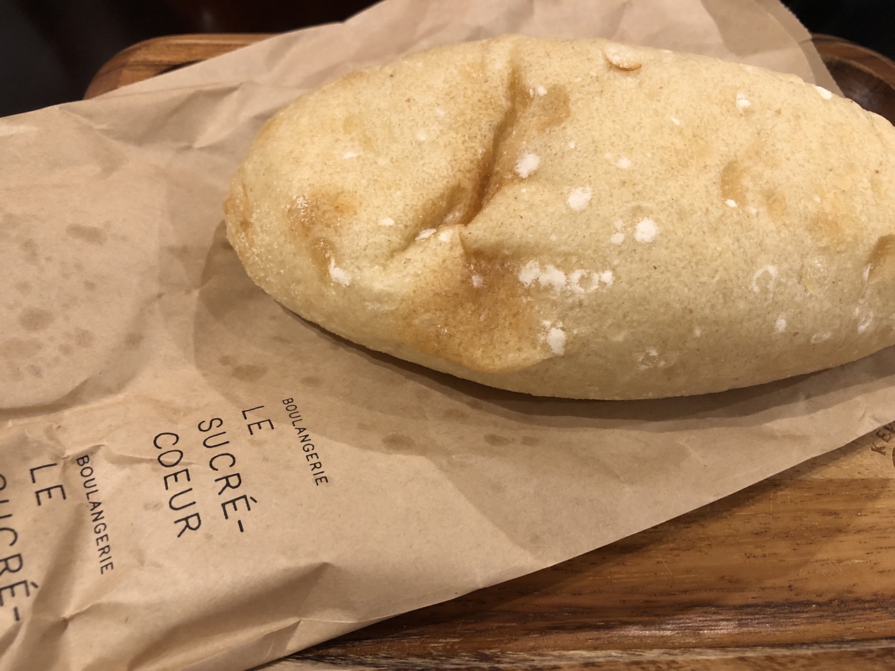 ル・シュクレクールは今回は平日だったので、さほど並ばずに買う事が出来ました。目的はいつものパン・ド・ミなのですが、周りのお客さんが次々かうもので、気になってチャパタも購入。これがまたアタリでこの系統で初めて美味しい!って思いました。これはリピートしたいです。