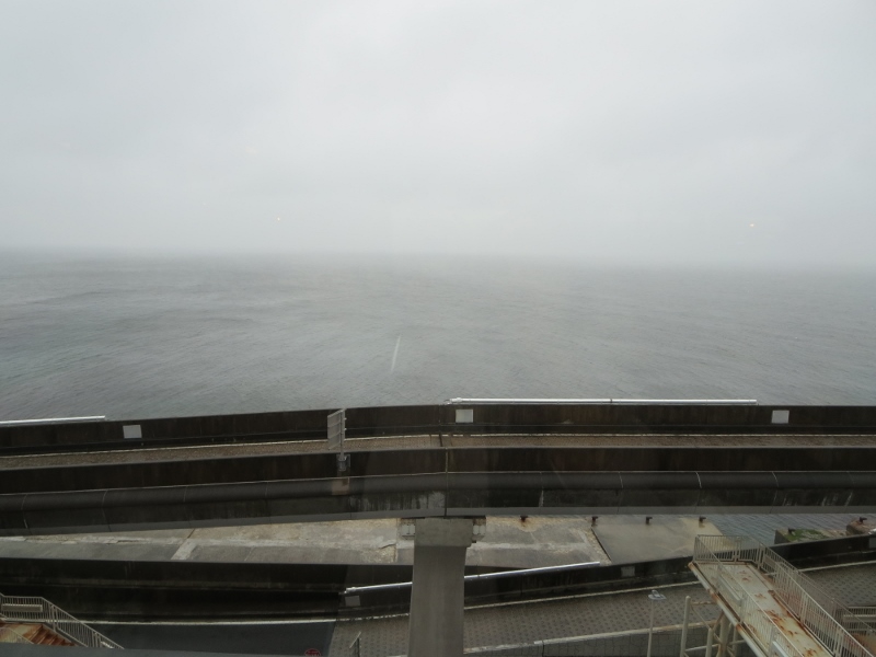 台風並みの悪天候の中だったので、景色を眺めることができませんでした。途中、海ほたるで食事休憩をしましたが、週末だったので車を停めるのも大変でした。海ほたるの中はレストランやゲームコーナーなどの他、足湯やアクアライン建設の説明ビデオコーナーもあって楽しめました。