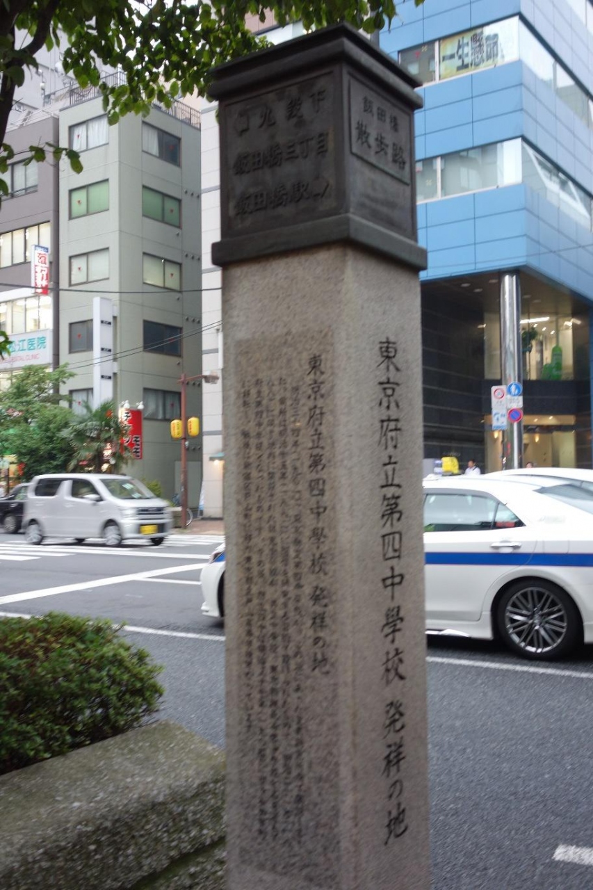 飯田橋あたりのエリアを散策中こちらの場所を訪れました。飯田橋駅の近くを走る目白通りの一部は歴史のプロムナードと呼ばれていて、歩道に幾つかの石柱が解説と共に立てられていますがこちらもそのひとつです。明治34年に開校したという歴史ある学校です。