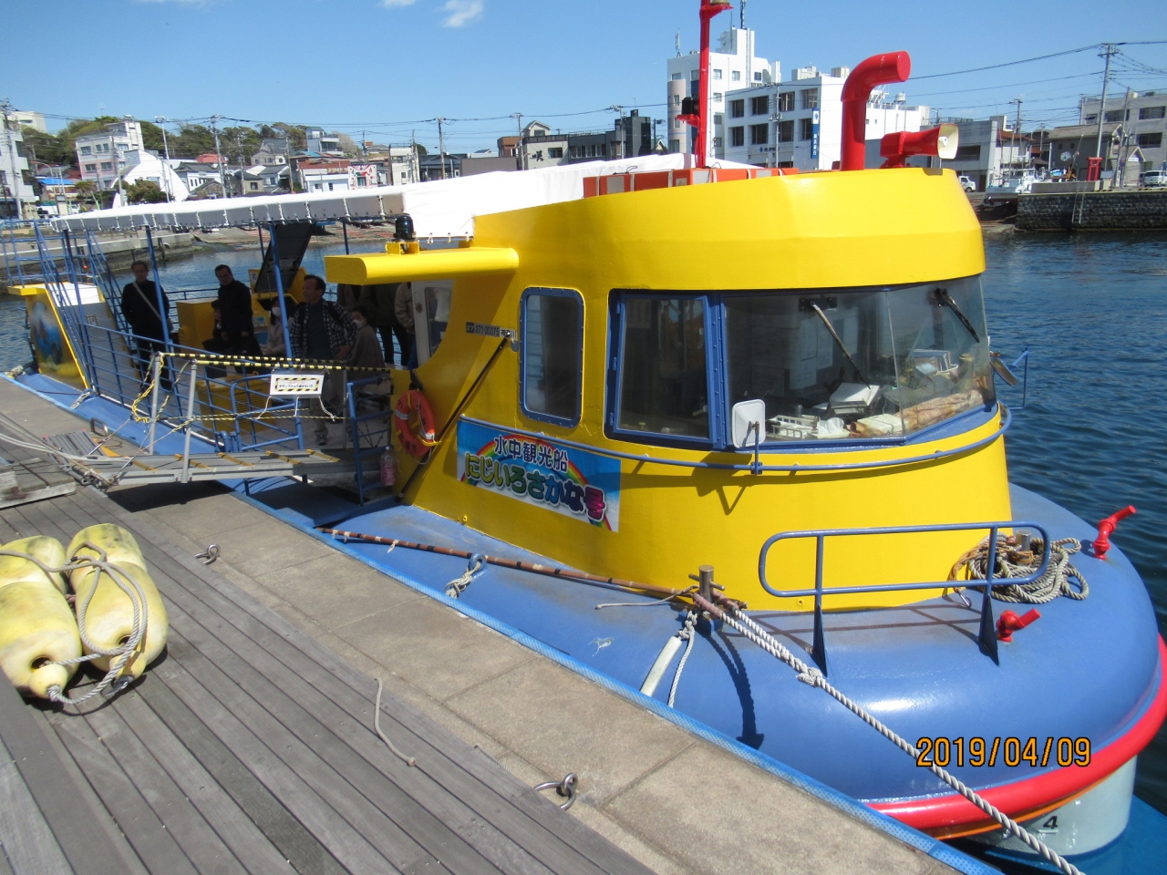 黄色にブルーの船体がかっこよく海風にぐいぐい進んでいきます。