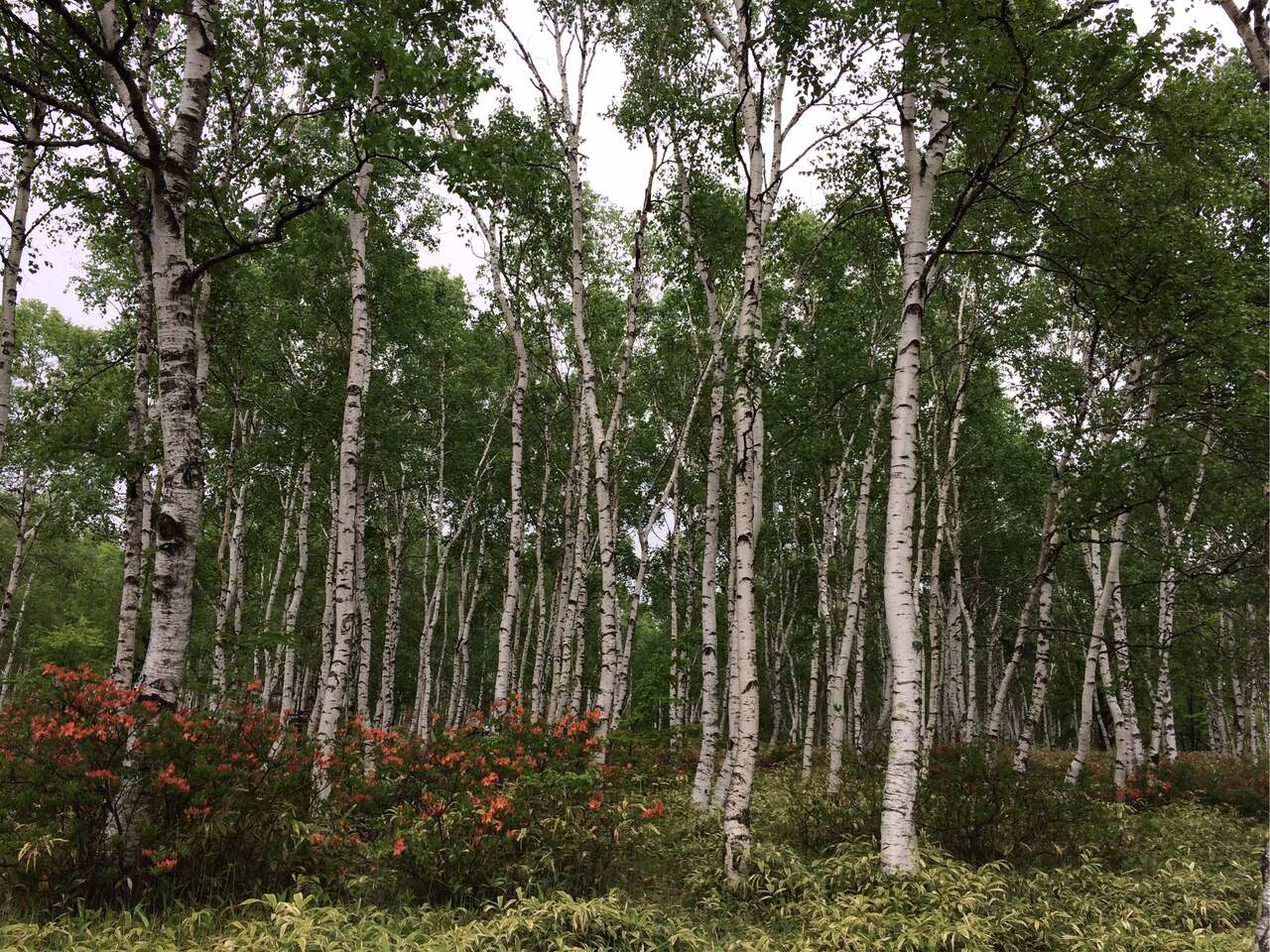みしゃか池に向かう途中で、思いがけず見つけた観光スポットです。早朝でしたが、白樺の森で、霧がかって、絶景でした。小雨が降っていたので、足元は泥で汚れましたが、空気が澄みわたって綺麗で、かっこうが鳴く声も聞こえました。