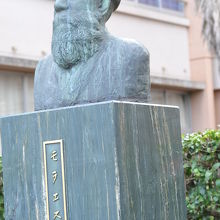 徳島駅前にある観光案内所のウォーキングマップに、ここもマーキングされていたので行ってみました。以前、ポルトガルのリスボンで、モラエスの生家に行ったことがあったのですが、徳島に縁がある人だとは認識していませんでした。学校の隣にポンッと置いてあるだけで、通行客で足を止めている人は居なかったです。あまり目立たない幹事でした。
