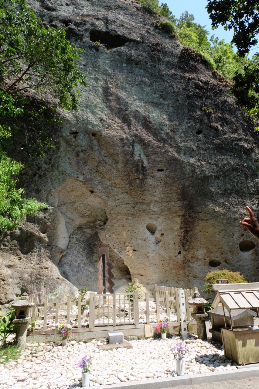 熊野三山の根源とも言われている、とても古くからある神社です。この神社には社殿がなく、高さ約45mの巨大な岩が御神体となっています。お祀りされているのはイザナミノミコト、カグツチノカミで、カグツチノカミを産んだ時に亡くなったイザナミノミコトが葬られた場所と言われています。岩はとても大きくて迫力があり、神聖な雰囲気があります。