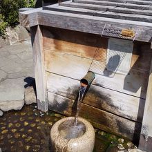 夏でも水温はとても冷たく、もったいないくらいの豊かな水量が流れています。井戸の前には休憩できるベンチがありました。
