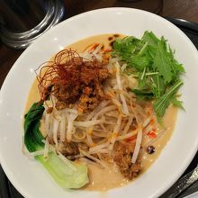 坦々麺というと、シビレ+辛さを求めていましたが、こちらのお味は想像していたよりアッサリです。もう少し刺激が欲しい時はラー油をガッツリいれると辛さ倍増です。