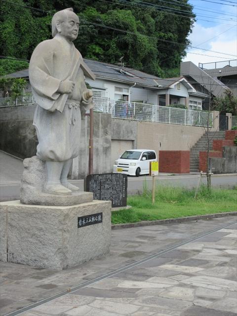 祇園之洲公園の片隅に建っています.若い頃に石橋作りを学び,アーチ式の石橋を作らせたら右に出るものはいないと呼ばれるほどの名人になったそうです.祇園之洲公園では,自らが作った高麗橋を見守るような感じで建っています.