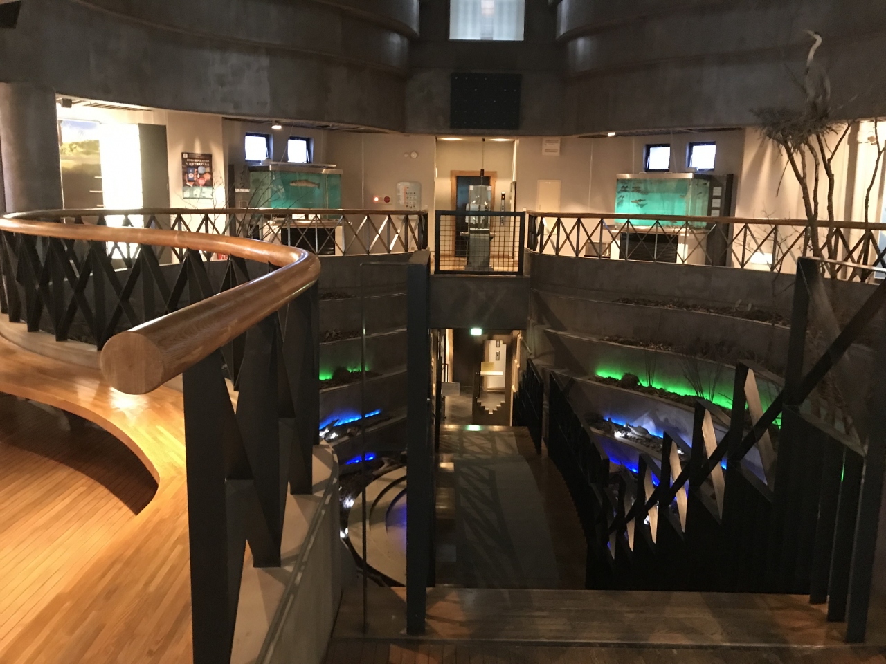 2階が資料館で湿原の成り立ちや、湿原に生息する動物の生態について学べます。イトウも展示されていました。3階は展望室になっていました。屋上にも出ることが出来て、釧路湿原を臨むことができます。当日は、天候が悪かったので、見通しが悪かったのが残念です。