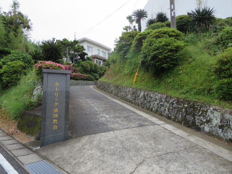 福江でレンタカーを借りて走り出し、堂崎天主堂に向かう途中に教会が見えてきました。五島列島で最初に出合った教会です。門の奥に白い教会が見えてきました。後から行った堂崎天主堂は今は資料館になっているので、教会としての役目はこちらが果たしているのだと知りました。きれいに整備されていました。