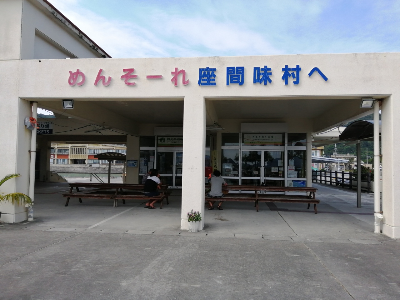 那覇の泊港からクイーンざまみで50分後に着いたのが、クジラのモニュメントが迎えてくれた座間味港です。
