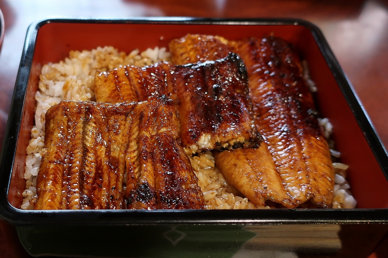 ホテル阪神に隣接したエリアにあるうなぎ料理のいかにも老舗だ。一階がテーブルと座敷、二階が座敷という構成だが、この日はランチだったので四人がけのテーブル席で。大阪の都心にありながらいわゆる蒸してから焼くという「関東風」のうなぎ料理が売りだが、入口の看板がいい。関東風ではなく「東京流」と書いてあった。メニューはうなぎ一匹半分の「梅」が2,700円、うなぎ四分の三の「竹」が3,800円、うなぎ一匹の「松」が4,900円だったが、ここは中庸を重んじて竹をオーダー。ごはんは大盛りでも無料だが、普通盛りで十分な量だ。予想通りふっくらとしたうなぎの身がおいしい。タレは甘くもなくちょうどいい塩梅だ。ご飯の粒が少し小ぶりだが、これはタレがよくからむからだろうか。特筆すべきはその建物だ。外観はいかにも戦前で、戦災を逃れたような年輪がそこここにある。