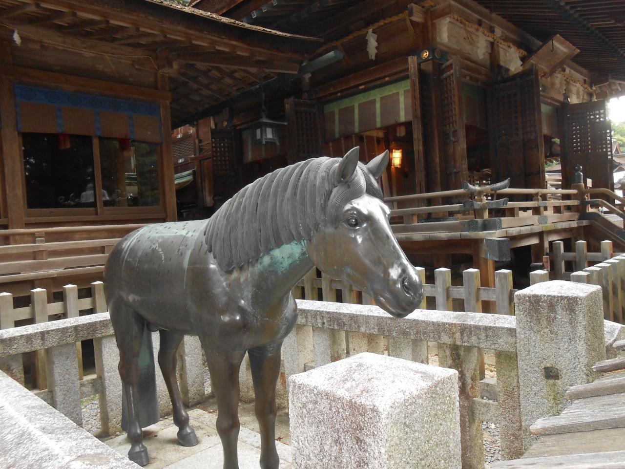 金刀比羅宮の左側に三穂津姫社があります 。社の手前に銅馬がいます。