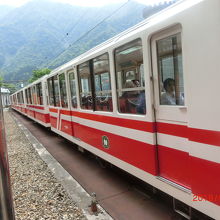 ここで標高599mの欅平から降りてきたトロッコ列車とすれ違います。