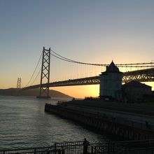 夕陽がきれいな明石海峡大橋などがある舞子公園。大きな公園ですが、起伏もあまりないので、歩きやすいですし、歩道もきちんと整備されているだけでなく、自動車もほとんど入って来ないので安心して遊べます。場内の海水浴場も須磨などよりもずっと空いています。