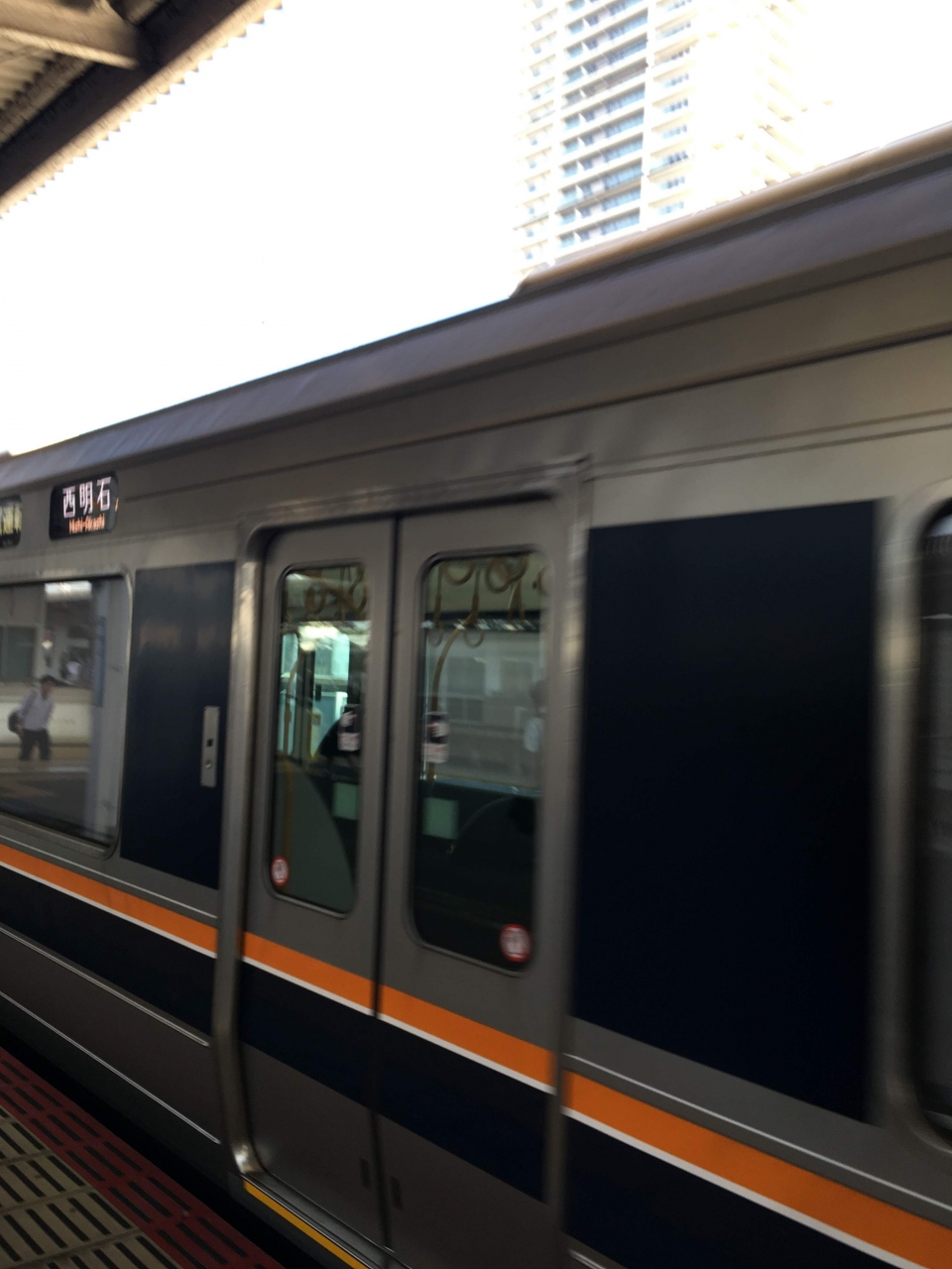 関西では神戸付近を走るJR山陽本線。各駅停車の本数はかなりありますが、特急電車は新幹線がその役目を果たしているのでほぼありありません。終電は東京地区よりも遅いほどにたくさんあるので、観光でも使い勝手の良い電車です。今の時期は海水浴場が目の前の須磨駅は混雑します。