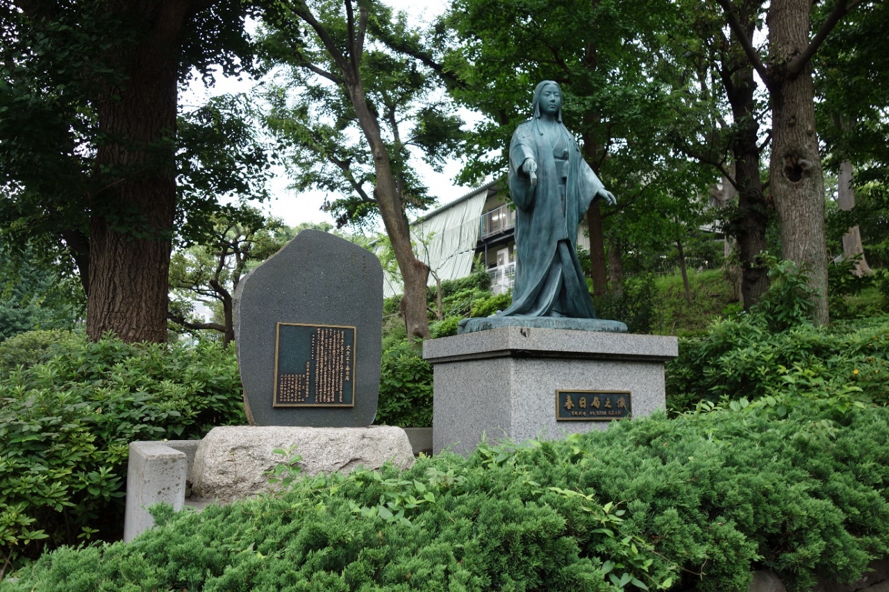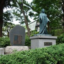 水道橋や後楽園あたりのエリアを散策中こちらの場所を訪れました。後楽園駅に隣接する礫川公園の春日通り側の道路沿い植え込みあたりに像は立っています。道路に向かって立つその姿は優雅な雰囲気を持っていました。
