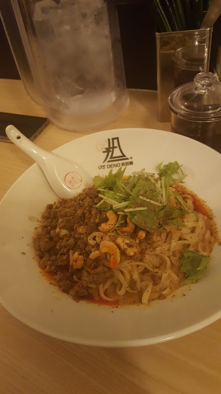 札幌ある痺れる担々麺が銀座にもということで行ってきました。場所はちょっとわかりにくいところにあり建物の地下にあり食券を購入してカウンター席に座りました。汁ありと、なしのメニューがあります。最初は普通に美味しく食べてましたがどんどん食べていくうちに本当に舌がしびれてきますが美味しい辛さと痺れがきます。