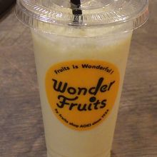 バナナ、マンゴー、パイン、オレンジ、リンゴ、牛乳から造られている。