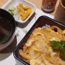 カツに使われている豚肉は、石見ポークという島根県邑南町産のもの。厚みがあるにも拘わらず、柔らかく、噛めば噛む程肉の旨味が滲み出て来る。玉子と、シャキシャキのタマネギとの相性も良い。